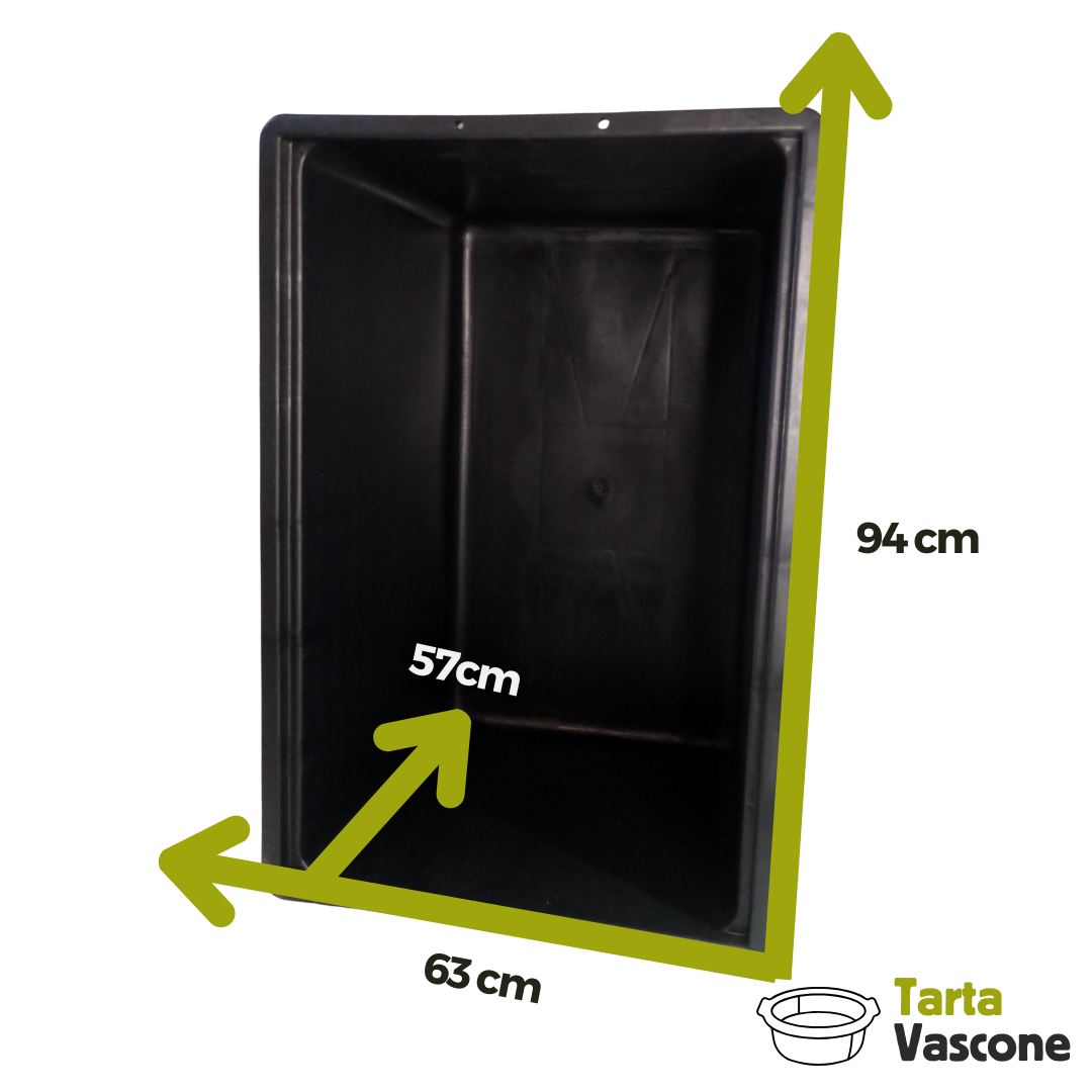 Il Vascone XL per tartarughe è un ampio contenitore da 94 x 63 x 57 cm, ideale per il mantenimento delle tartarughe d’acqua dolce. Le sue dimensioni offrono un ottimo rapporto qualità-prezzo, garantendo spazio sufficiente per l’acqua e per il benessere dell’animale.